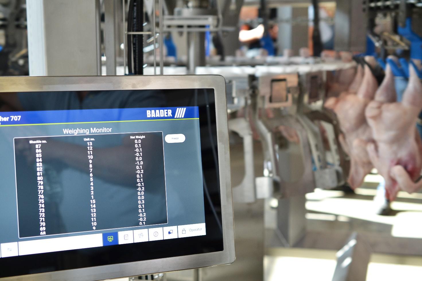 El pesaje preciso asegura que cada pollo se mida con exactitud, garantizando uniformidad en tamaño y peso. Esta consistencia es fundamental para entregar un producto de calidad constante. Ya sea para tiendas minoristas o servicios de alimentos, los consumidores esperan porciones de pollo uniformes, y el pesaje exacto es la clave para cumplir con estas expectativas. El pesaje preciso también está estrechamente relacionado con la rentabilidad. Un peso exacto para cada ave facilita su asignación óptima a los procesos posteriores según su tamaño. Esto, a su vez, maximiza el rendimiento y minimiza el desperdicio, contribuyendo significativamente a un negocio más sostenible. Además, los procesadores que empaquetan aves enteras a pesos fijos deben ser especialmente cuidadosos con el pesaje preciso. No hacerlo puede resultar en un exceso de peso, donde se sobre asignan productos, lo que lleva a pérdidas innecesarias y reduce la rentabilidad. La última innovación de BAADER para asegurar un pesaje preciso de aves enteras es el TrueWeigher. Este dispositivo de pesaje utiliza un principio de pesaje estático único para lograr un resultado de pesaje mejor que el 0.25% a las velocidades de línea más altas. Junto con ClassifEYE y una Transferencia Selectiva, el procesador obtiene flexibilidad en la producción y el mejor uso de cada ave.