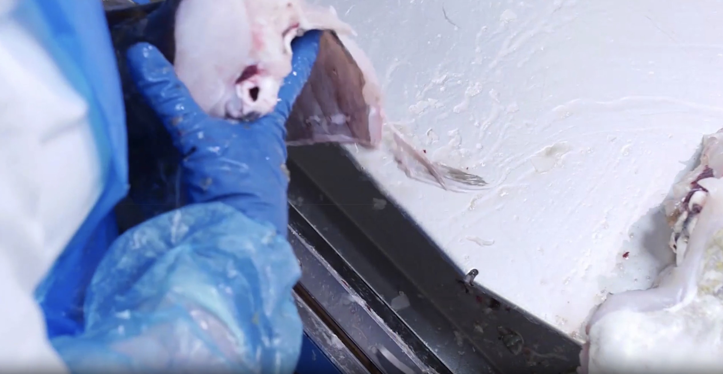 One special feature of the BAADER 59 is that the skinned fillets leave the machine already stretched out and separate from each other. This allows for easy inspection and further processing.